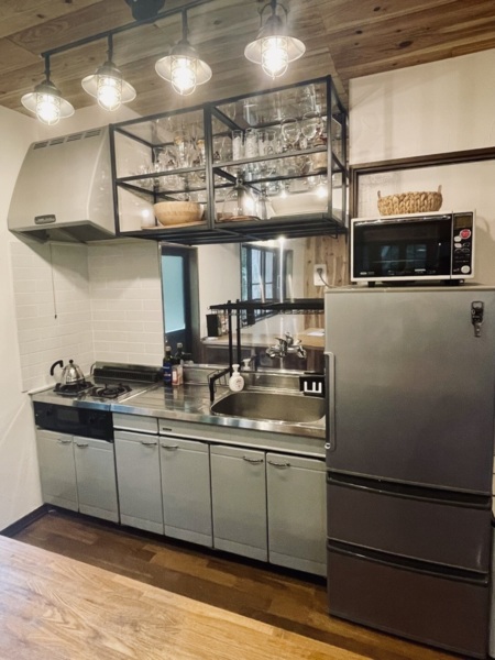 カトラリー・調理器具:包丁3本、まな板2枚、お玉、フライ返し、菜箸、トング、しゃもじ、ピーラー、栓抜き、ワインオープナー、ハサミ