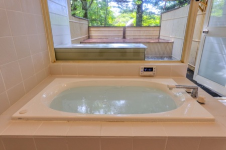 露天風呂2か所、内風呂1か所、キッチン、ダイニング、共用トイレ1か所