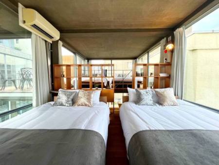 この施設は吹き抜けのデザイナー建築なので、各寝室は独立しておらず、壁はありません。お写真をご参考にお願いします。