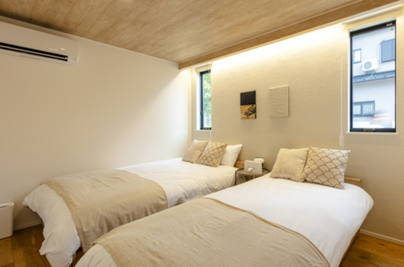 寝室2:ダブルベッド×1、シングルベッド1(計3名)