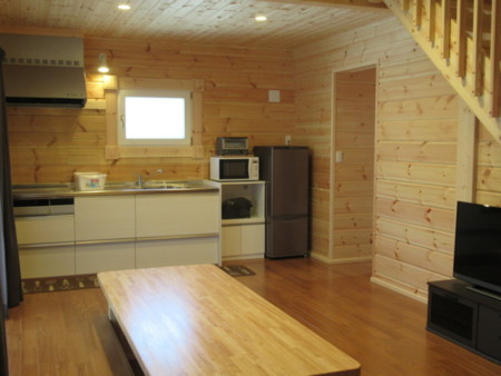 キッチン ログコテージIHクッキングヒーター 調理器具一式 食器一式 冷蔵庫 電子レンジ トースター 電気炊飯器 電気ケトル ラップ アルミホイル (調味料は各自お持ちください。)