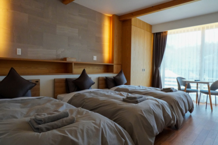※ベッド:シモンズベッド計9台(幅125cm×長さ195cm×高さ60cmが1台、幅97cm×長さ195cm×高さ60cmが4台、高さ30cmが4台)追加寝具はお布団セットをご用意