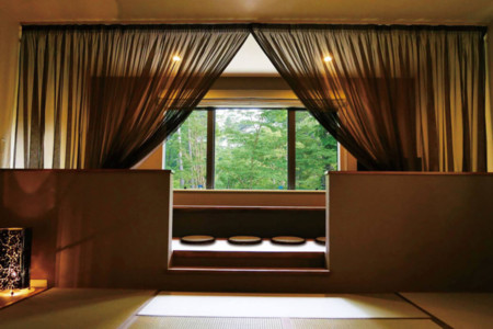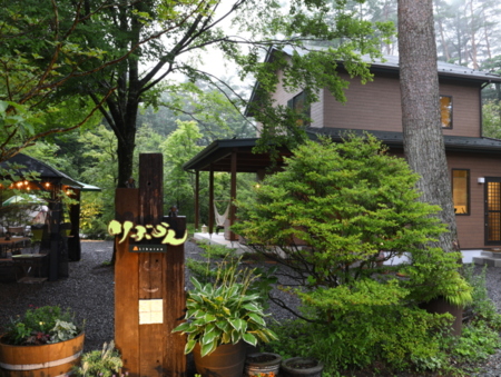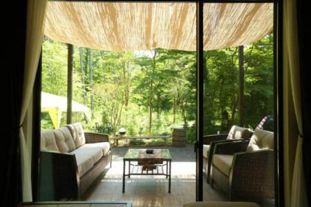 河口湖インターから5キロでたどり着く、自然に囲まれた森辺のヴィラ。