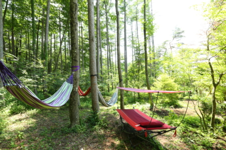 1F:LDK21畳・和室7畳・バス・洗浄トイレ・洗面・脱衣室・ テラスにパーゴラ・庭にBBQガセボ・ハンモック・ブランコ・スラックライン・森の小屋・グランピングテント(直径4m)、お昼寝小屋すべて貸切でご利用頂けます。