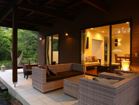 間取り:空テラス117㎡(with森の庭)屋根付きテラス20㎡・露天風呂付(3月下旬日~11月下旬利用可能)