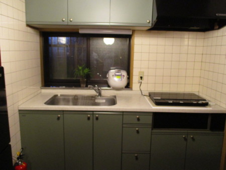 システムキッチンがあります。調理器具・食器などはすべて揃っています。