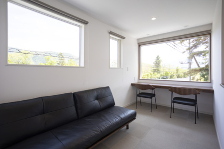 2階にはソファ付の眺望ペースがあり、ワーキングスペースとしてもご利用頂けます。洋室5部屋(セミダブル・ダブルベッドの組合せ)の5ベッドルーム(各部屋ドア付き)ですので、ご家族・ご友人とプライベートな時間をゆっくりお過ごしいただけます。