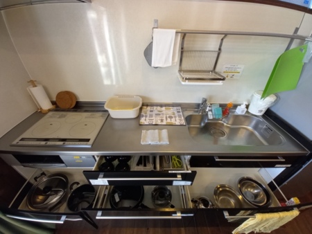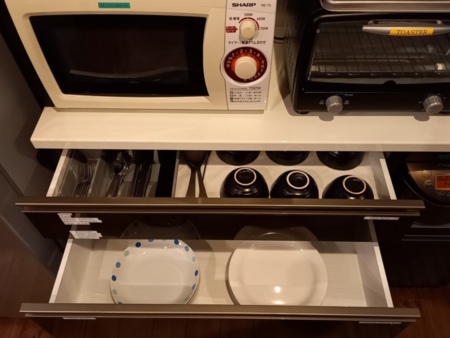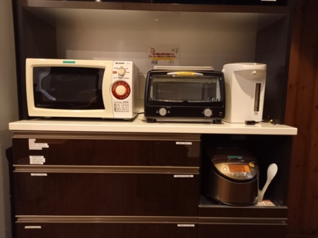 テレビ、冷蔵庫、オーブントースター、電子レンジ、電気ポット、炊飯器、食器各種、調理器具各種、布団、エアコン、空気清浄機(加湿機能付き)、Free Wi-Fi、ボディソープ、シャンプー、コンディショナー、ヘアードライヤー、綿棒、バスタオル、フェイスタオル、歯ブラシ