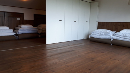 貸別荘内にはリビング、寝室(寝具)、キッチン、風呂、トイレ、冷蔵庫等があります。
