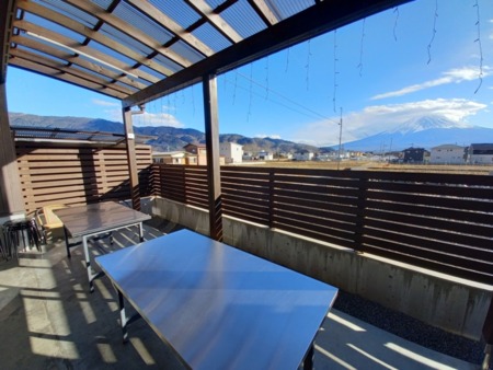 テラスにて雨の日でもBBQ(有料)を楽しめます。