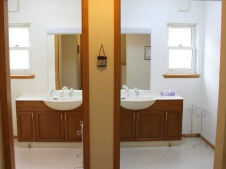 約4.6帖の広々バスルームは浴槽も大型ですのでゆっくりと寛げます。洗面室は1階と2階に2箇所、3室あります。また、トイレは1階に2箇所(ウォシュレット付き)、2階に2箇所(男女別)ご利用頂けます。2017年11月に2K女子トイレ・バス給湯器リフォームをしました。
