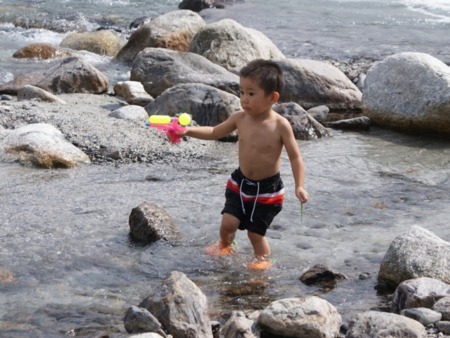 川遊びが楽しめる清流「大武川」は100mの近さ。